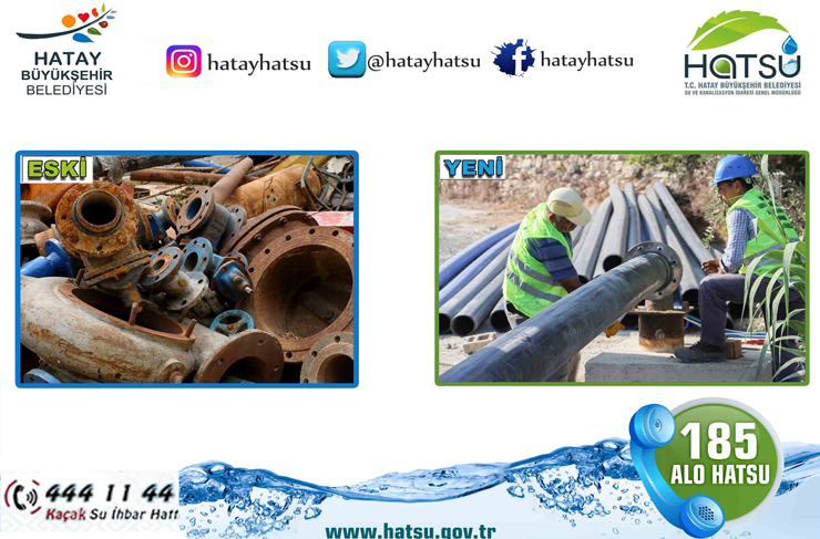 Hatay Büyükşehir Belediyesi Su ve Kanalizasyon İdaresi Genel Müdürlüğü (HATSU), çalışmalarını sürdürdüğü dev içmesuyu projeleri ile sağlığa zararlı paslı boruların bertarafını sürdürüyor.