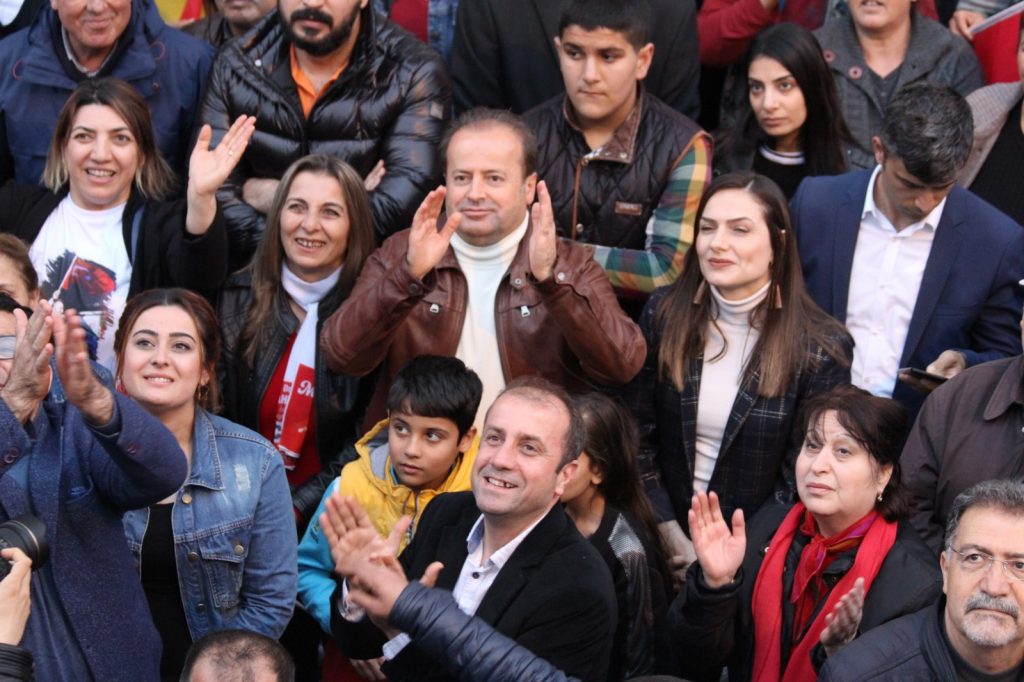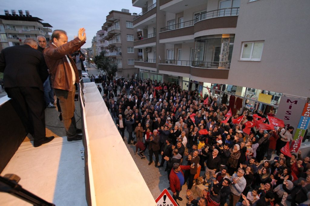Son olarak şunu söylemek istiyorum. İskenderun Belediyesi’nin mevcut olanaklarını şahıslara, gruplara, küçük zümrelere değil, umumun menfaatini gözeterek 250.000 İskenderunlumuzun çıkarını ön planda tutarak kullanacağız. Belediyemizi rantın, talanın değil, sizlere hizmetin adresi yapmaya söz veriyoruz. 31 Mart’ta İskenderun kazanacak, kardeşlik kazanacak. 31 Mart’ta oyunuza geleceğinize sahip çıkın” şeklinde konuştu. (Haber: Helga TERBİYELİ)