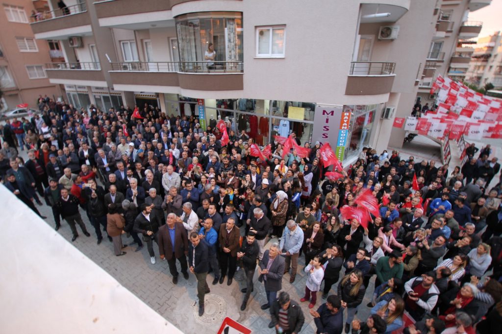 Yunus Emre Mahallesi CHP seçim ofisi önünde gerçekleştirilen açık hava toplantısına CHP Hatay Milletvekili Suzan şahin, CHP İskenderun İlçe Başkanı Yusuf Mansuroğlu ve yönetimi, İyi Parti İskenderun İlçe Başkanı Zafer Kıvrak ve yönetimi, kadın kolları, gençlik kolları, belediye meclis üyesi adayları, partililer ve çok sayıda mahalle sakinleri katılım gösterdi.