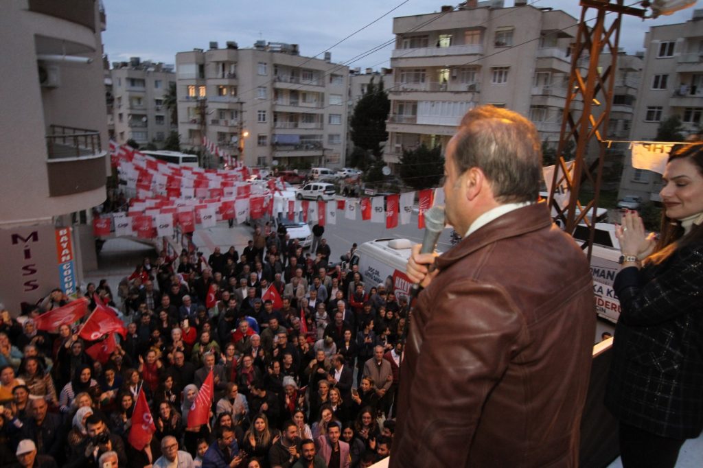 Son olarak şunu söylemek istiyorum. İskenderun Belediyesi’nin mevcut olanaklarını şahıslara, gruplara, küçük zümrelere değil, umumun menfaatini gözeterek 250.000 İskenderunlumuzun çıkarını ön planda tutarak kullanacağız. Belediyemizi rantın, talanın değil, sizlere hizmetin adresi yapmaya söz veriyoruz. 31 Mart’ta İskenderun kazanacak, kardeşlik kazanacak. 31 Mart’ta oyunuza geleceğinize sahip çıkın” şeklinde konuştu. (Haber: Helga TERBİYELİ)