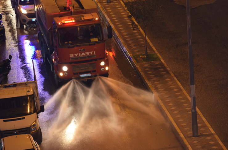 Hatay Büyükşehir Belediyesine bağlı 3. Bölge İtfaiye ekipleri ile Zabıta şube müdürlüğü öncülüğünde İskenderun’daki ana arter caddeler ile ara caddeler dezenfekte edildi. Ekiplerin kimsenin rahatsız olmaması ve etkilenmemesi amacıyla gece başlattığı çalışmalar vatandaşlar tarafından takdirle karşılanırken yetkililer salgına karşı alınan önlemlerin aralıksız süreceğini belirttiler.