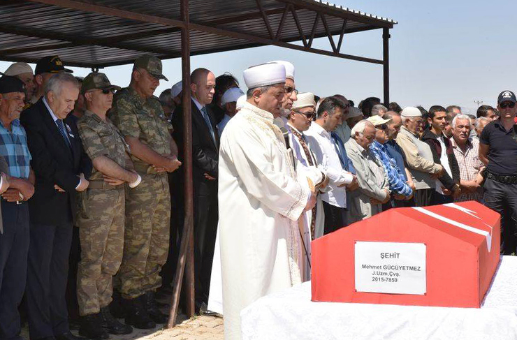 23 yaşındaki Gücüyetmez’in cenazesi, önce ilimiz Kumlu ilçesi Akkerpiç Mahallesi’ndeki baba evine getirildi. İl Müftüsü Hamdi Kavillioğlu tarafından Akkerpiç Mahallesi mezarlık kompleksinde saat 14.00’te kıldırılan cenaze namazının ardından şehidimizin Türk Bayrağı’na sarılı naaşı gözyaşları, tekbirler ve dualarla toprağa verildi.