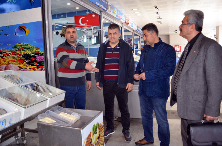 İskenderun Kasaplar Odası Başkanlığına getirilen Nevzat Sert ve Başkan yardımcısı Adnan Taş, Yeni Balıkhaneyi gezerek, balıkçı esnafının sorunlarını dinledi.