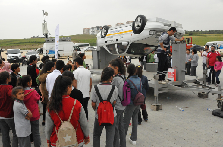 Emniyet kemeri takmanın ve trafik kurallarının önemini HBB Kitap Fuarı’na katılım sağlayan vatandaşlara anlatan ekipler, farkındalık yaratmak üzere tasarlanan simülasyon aracı ile katılımcıları bilinçlendirdi. Uzaktan kumada ile havada takla atan simülasyon aracını izleterek emniyet kemerinin ne kadar hayati bir önem taşıdığı uygulamalı olarak gösteren HBB ekipleri, karşıdan karşıya geçişler, emniyet kemeri ve ilk yardım hakkında bilgiler verdi.