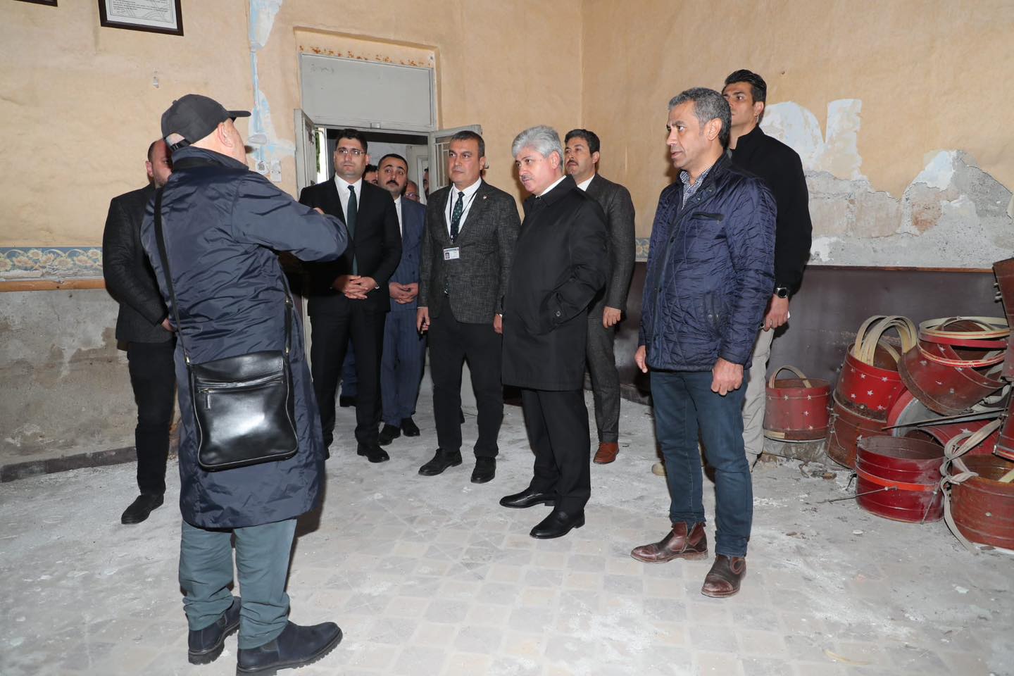 Vali Rahmi Doğan, sunum toplantısının ardından, Hatay Milletvekili Abdulkadir Özel ve beraberindeki heyet ile birlikte, Tarihi İskenderun Lisesi binasında incelemelerde bulundu.