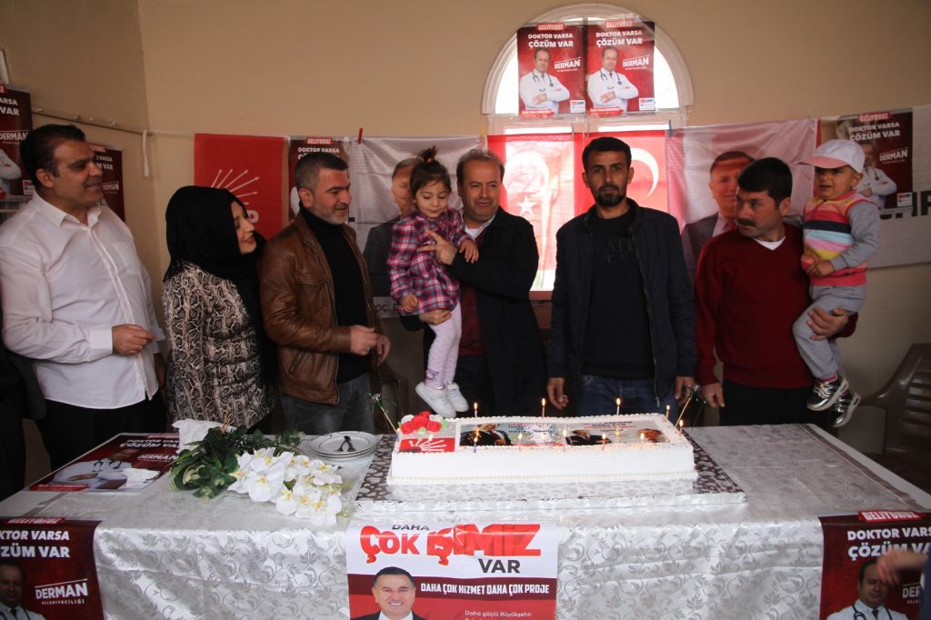 Kurbanlarla karşılandığı Esengül Mahallesinde Şahutoğlu’na üzerinde resminin bulunduğu pasta sürprizi de yapıldı.