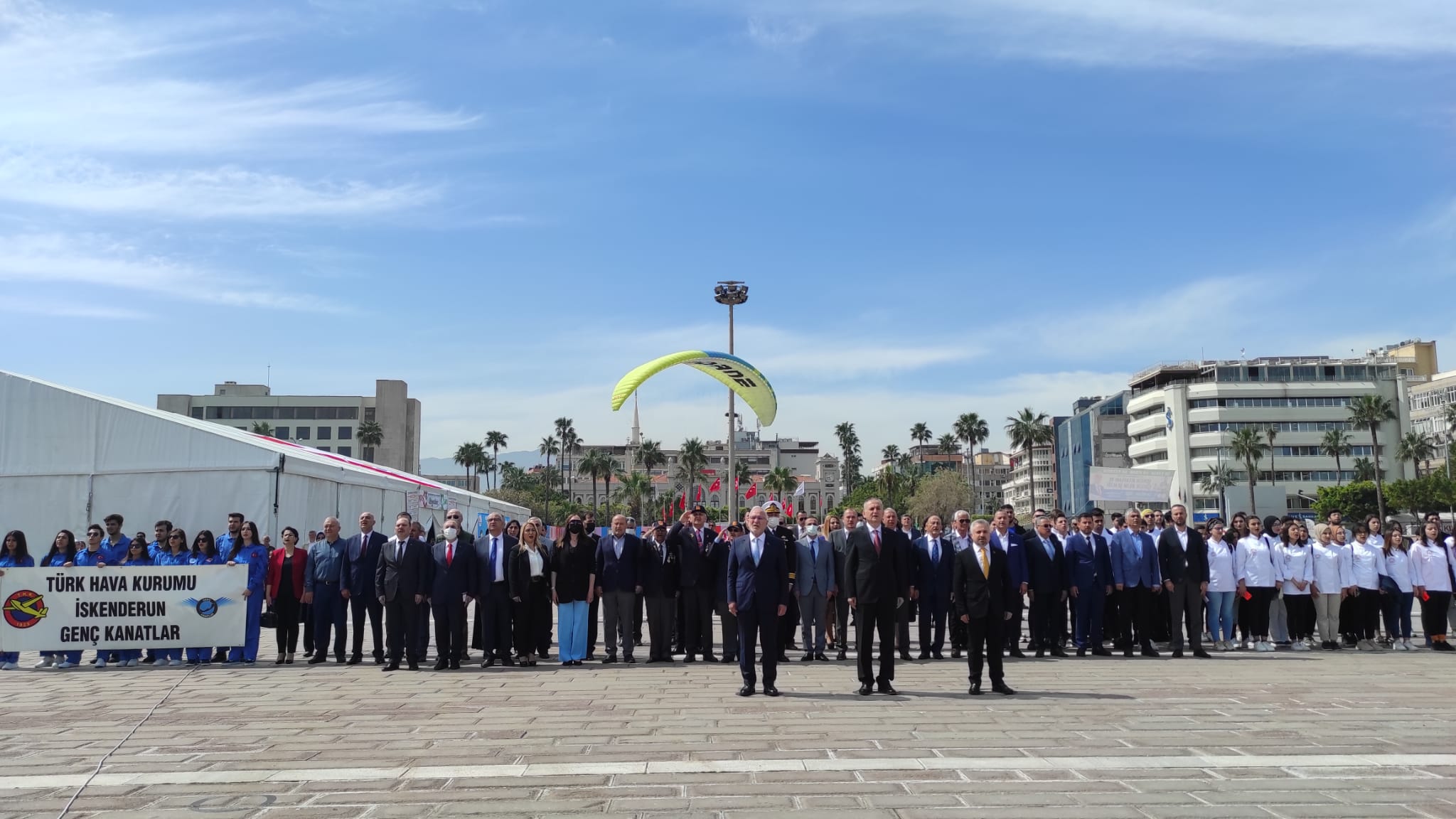 Yapılan konuşmaların ardından Protokol ve öğrenciler, mehteran takımı, halk oyunları, THK ve Akdeniz Spor Kulübü yamaç paraşütü gösterisini ve akabinde iskeleden deniz üzerinde gösteri yapan optimist sporcularının gösterisi ve yarışlarını izledi. (Haber: Helga TERBİYELİ)