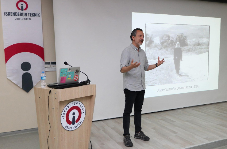 İskenderun Teknik Üniversitesi (İSTE) Merkez Kampus Rektörlük Konferans Salonu’nda gerçekleştirilen konferansta konuşan Doç. Dr. Ahmet Gürata, Türk Sineması’nın başlangıcından şu ana kadarki gelişim ve değişimini ele alan ve değerlendiren bir sunum yaptı.