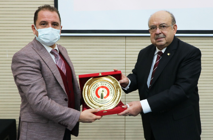 İSTE Rektörü Prof. Dr. Tolga Depci, Dr. Bayrak’a sunumu ve paylaştığı kıymetli bilgiler için teşekkür ederek günün anısına plaket ve hediye takdiminde bulundu. (Haber Merkezi)