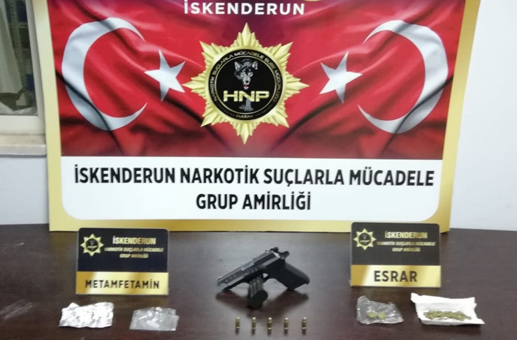 Öte yandan, yine uyuşturucu, uyarıcı madde imal ve ticaretine yönelik yapılan çalışmalar kapsamında İskenderun’da bulunan M.T. ile S.U.’nun ikametlerinde arama gerçekleştirildi. İkametin yanı sıra yapılan üst aramalarında; 1,85 gram metamfetamin, 3,35 gram esrar, 1 adet tabanca, 1 adet şarjör, 5 adet fişek ele geçirildi. Olayla ilgili olarak M.T. ile S.U. yakalandı, ayrıca M.T.’nin 6136 Sayılı Kanuna Muhalefet (SKM)’ten ve uyuşturucu madde kullanmak suçundan arandığı da tespit edildi. (Haber: İlyas Edip TERBİYELİ)