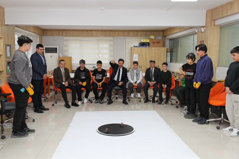 Hatay Valisi Mustafa Masatlı, 2-4 Nisan 2026 tarihlerinde düzenlenecek olan 2. HatayBOT Robot Yarışması öncesinde hazırlıklarını sürdüren öğrenci ve öğretmenleri M2 STEAM Bilim Merkezi’nde ziyaret etti.