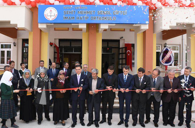 Hatay Valisi Ercan Topaca şehidimizin yakınları ile beraber açılış kurdelesini keserek Şehit Mehmet Şenol Çiftçi İmam Hatip Ortaokulu’nu eğitim ve öğretime açtılar.
