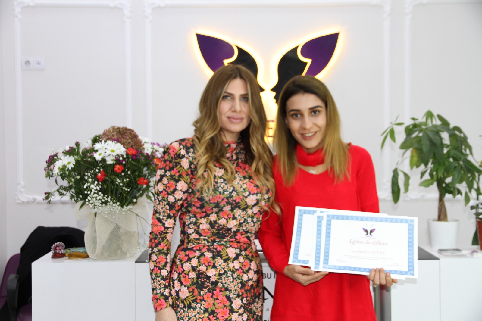 Microblading, Lazer Epilasyon, Cilt Bakımı, Kirpik Lifting eğitimleri veren Şirin Kayalı Mercan, eğitimini tamamlayan iki kursiyerine sertifikalarını takdim etti.