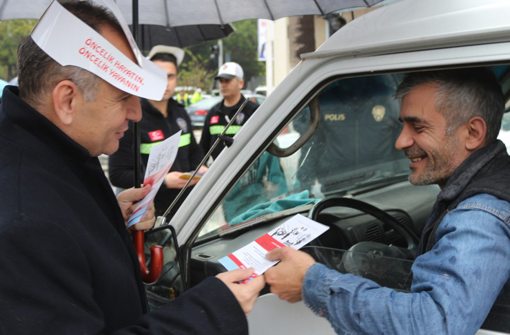 Yaya geçitlerinden geçişler yapılmasının akabinde, broşür, karton şapka ve karanfil dağıtımı ile sürücü bilgilendirilmesi de yapılarak yaya öncelikli trafik konusunda oluşturulan farkındalığa ciddi bir katkıda bulunuldu.