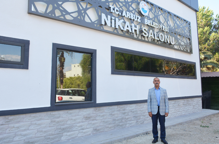 Arsuz Belediye Başkanı Nazım Culha, bu kez yapımı tamamlanan modern ve konforlu nikâh salonunu ilk nikâhı kıyarak hizmete açtı. Altınkent sitesi civarında yapımı tamamlanan ve gelin odası, damat odası, nikah salonu, mutfak, evlendirme bürosu gibi mimari yapısının yanı sıra, salona ayrı bir ışıltı katan Atatürk’ün dans ederkenki portresi ile dikkat çeken salonda ilk nikahı Seda – Mehmet Ali Çiçek çiftine kıyan Başkan Culha, nikah salonunun tüm özel günlerin kutlanmasının yanı sıra çok amaçlı salon olarak da kullanılabileceğini ifade etti.