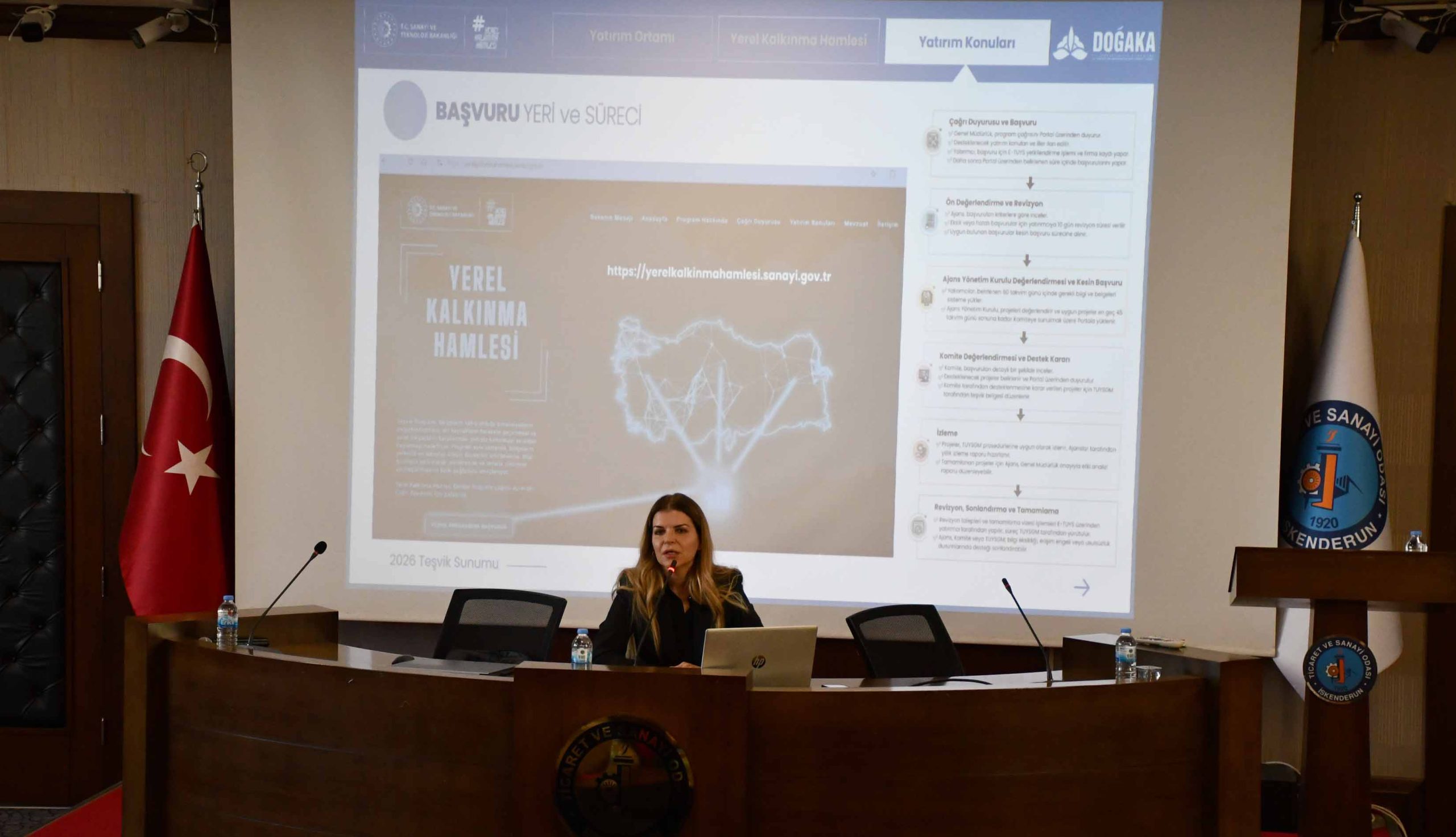 İskenderun Ticaret ve Sanayi Odası (İTSO) ev sahipliğinde düzenlenen bilgilendirme toplantısında, 2026 Yılı Yerel Kalkınma Hamlesi Teşvik Programı iş dünyası temsilcilerine anlatıldı. T.C Sanayi Bakanlığı tarafından yürütülen program kapsamında gerçekleştirilen toplantıda, DOĞAKA Hatay Yatırım Destek Ofisi Koordinatörü Menal Zubarioğlu katılımcılara kapsamlı bir sunum yaptı.