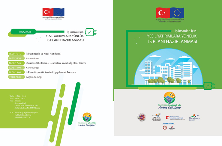 Hatay Büyükşehir Belediyesi, Enerji Hukuku Araştırma Enstitüsü ve T.C Çevre ve Şehircilik Bakanlığı iş birliği ile ‘İş İnsanları İçin Yeşil Yatırımlara Yönelik İş Planı Hazırlanması’ çalıştayı gerçekleştirilecek. “Sürdürülebilir Bir Gelecek İçin Hatay Değişiyor” projesi kapsamında gerçekleştirilecek çalıştayda, katılımcılara iş planı, ulusal ve uluslararası desteklere yönelik iş planı yazımı ve iş planı yazım yöntemleri uygulamaları hakkında bilgiler verilecek.