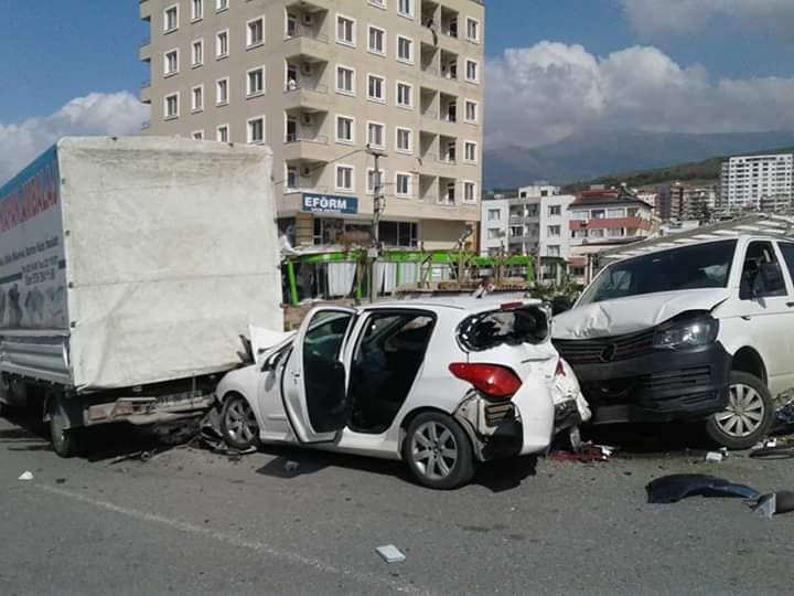 E-5 karayolu üzerinde, Belen’den İskenderun istikametine seyreden Bayram A. idaresindeki 33 CSF 03 plakalı zeytinyağı yüklü tırın, Deniz Alayı Kavşağı yakınlarında freni boşaldı. Kamyon ve tırların girişinin yasak olduğu şehir merkezine yönelen tır korna çalarak ilerlemeye devam etti ve polisin koronavirüs tedbirleri kapsamında uygulama yaptığı bölgede beklemekte olan araçlara çarptı.