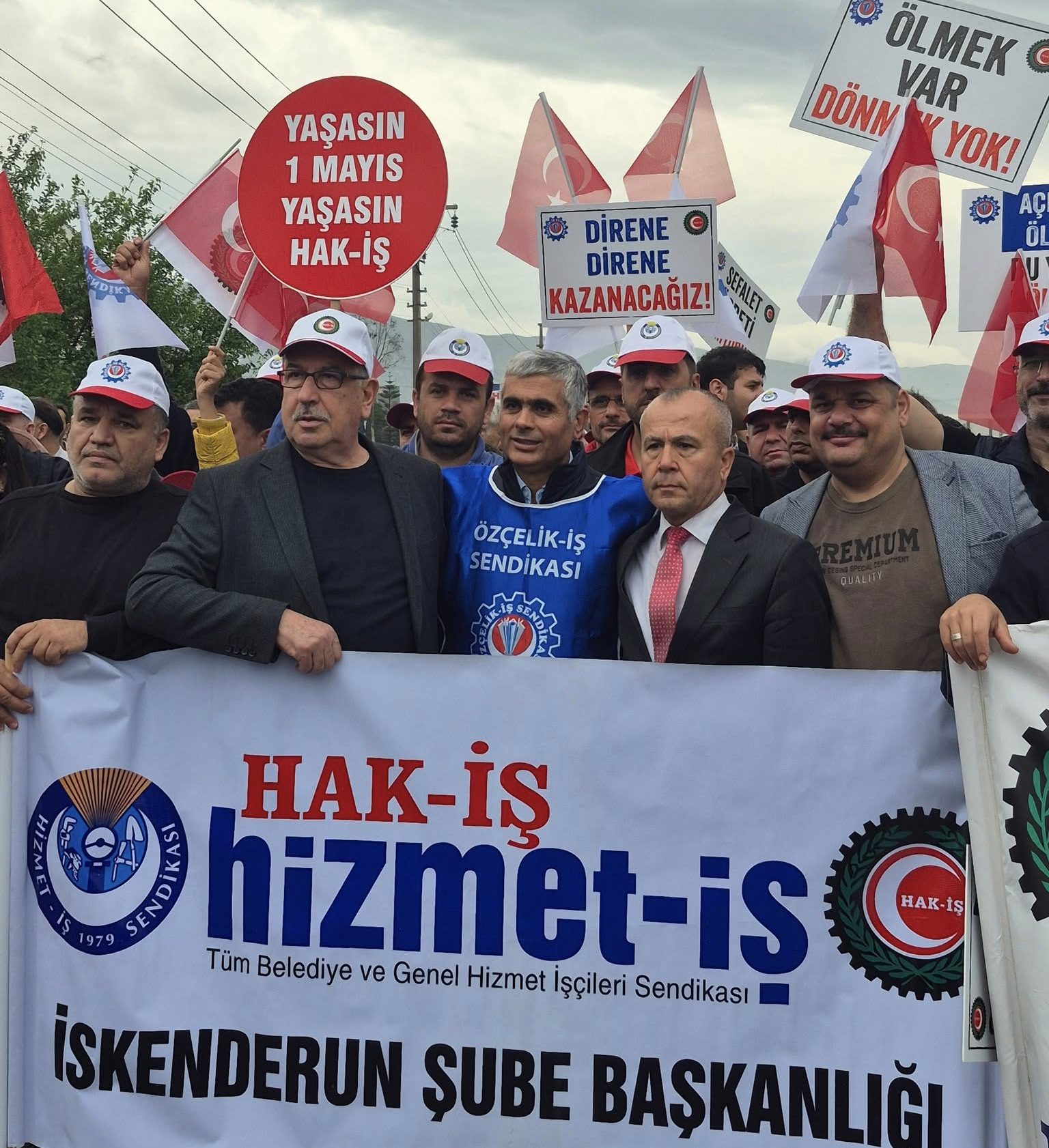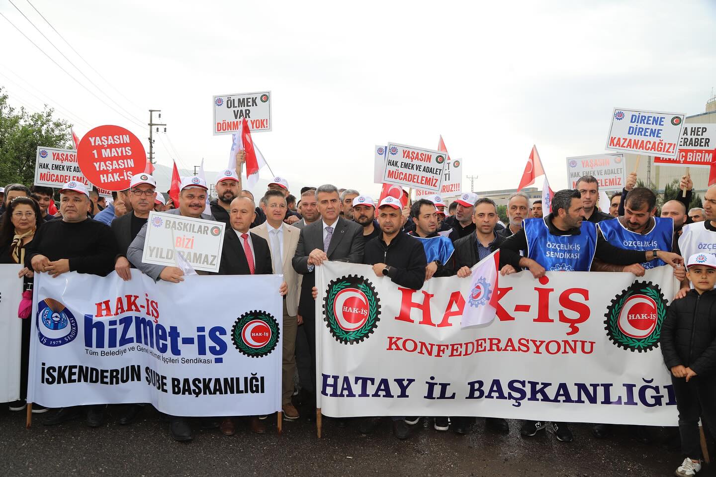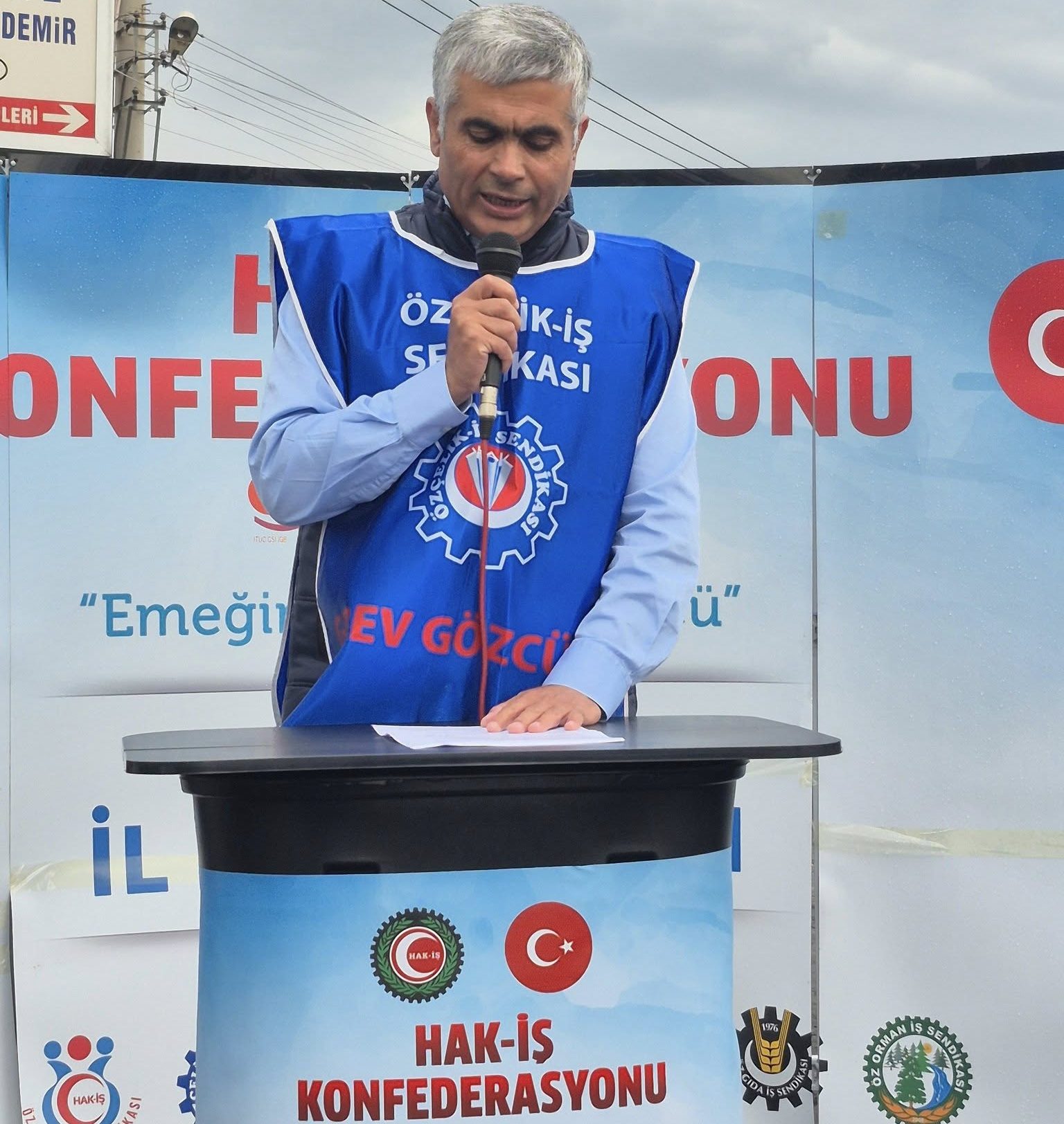 Saygı duruşu ve İstiklal Marşımızın okunmasıyla başlayan programda söz alan Hak-İş Hatay İl Başkanı, Özçelik-İş Sendikası İskenderun Şube Başkanı Mehmet Güngör, bugün kendileri için bir bayram olmadığını kaydederken; “Yolbulan emekçisinin haklı talep ve beklentilerine kör ve sağır olanlar bayramımızı bize zehir etmişlerdir. Ne olursa olsun hak mücadelemizi sonuna kadar ilk günkü kararlılıkla sürdüreceğiz” dedi.