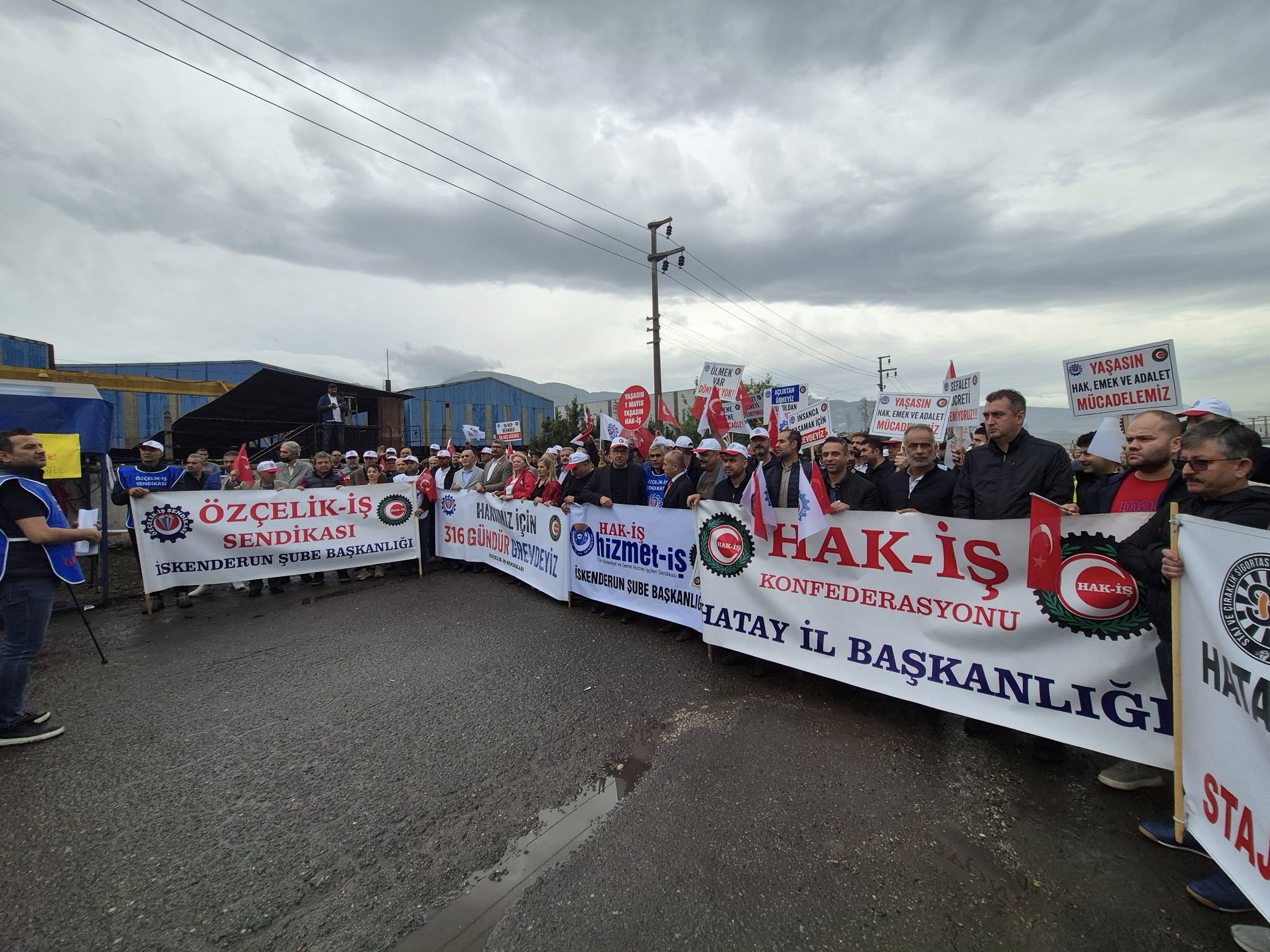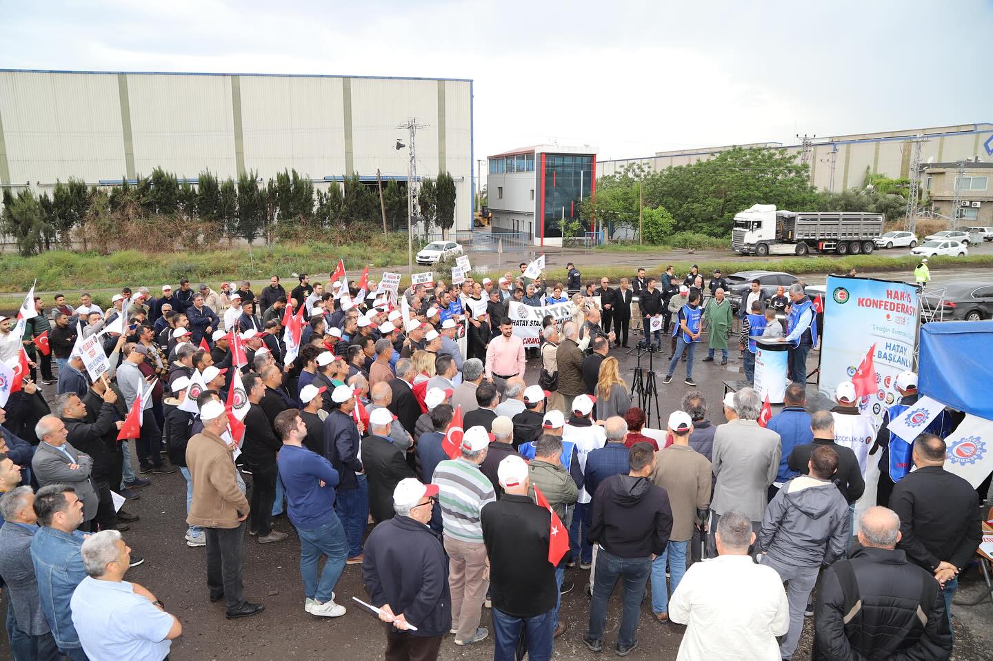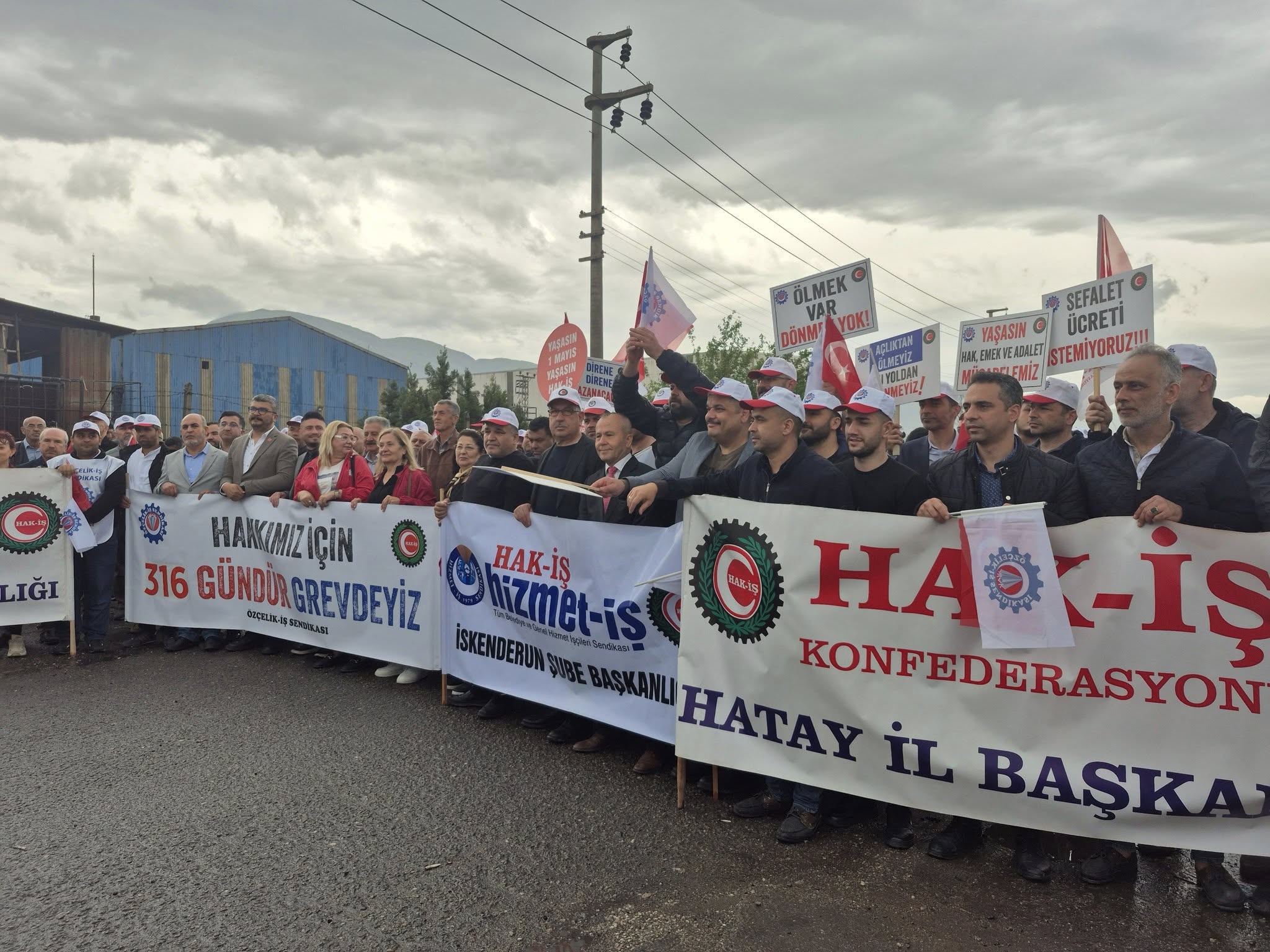 Hak İş Konfederasyonu Hatay İl Başkanlığı, 1 Mayıs Emek ve Dayanışma Günü dolaysıyla 316 gündür grevde olan Yolbulan İşçisine destek amacıyla fabrika önünde yoğun katılımlı bir açıklama gerçekleştirdi.