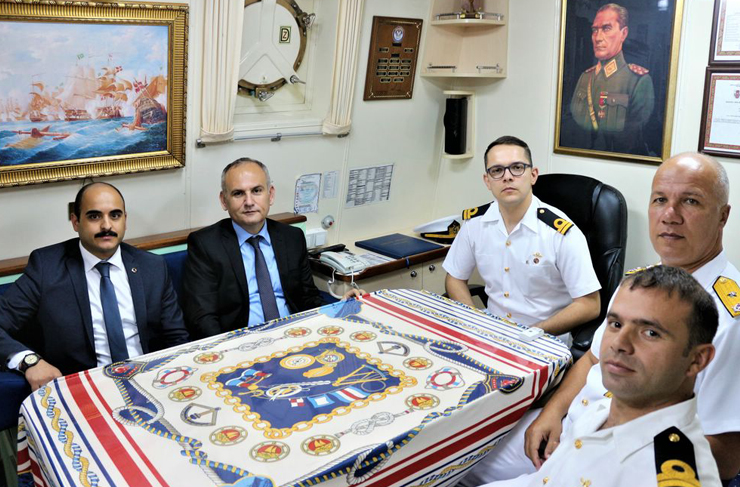 İskenderun Kaymakamı İskender Yönden ve beraberindeki Kaymakam Adayı Ali Cemal Altınöz, Deniz Kuvvetleri Komutanlığı tarafından yürütülen ve Cumhuriyet tarihinin en büyük tatbikatlarından olan ‘Deniz Kurdu 2019 Tatbikatı’ kapsamında İskenderun Deniz Üs Komutanlığı limanında bulunan TCG Tarsus (P-1204) Gemisine ziyarette bulundu.