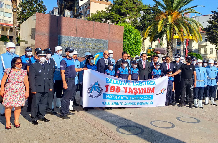 Hatay Büyükşehir Belediyesi, Zabıta Teşkilatı’nın 195. kuruluş yıl dönümü ve her yıl 1-7 Eylül tarihleri arasında kutlanan Zabıta Haftası dolayısıyla çelenk sunma töreni düzenledi. Antakya Cumhuriyet Meydanı Atatürk Anıtı önünde düzenlenen törene HBB Genel Sekreter Yardımcısı Metin Açık, Zabıta Dairesi Başkanı Alper Kılıçoğlu ve HBB zabıtaları katıldı. Törende anıta çelenk sunularak saygı duruşunda bulunuldu ve İstiklal Marşı okundu.