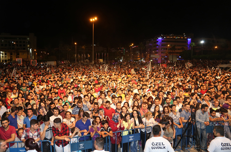Beşiktaş’ın Pazar günü Gaziantep’le oynadığı maçta 4-0 galip gelerek şampiyonluğunu ilan etmesiyle sokaklara dökülen Beşiktaşlılar da konser alanına gelerek tezahürat yaptılar. Şampiyonluk coşkusunu Zara’nın güzel sessiyle taçlandıran Beşiktaşlılar, büyük bir coşku yaşadılar. Konser alanında birçok Beşiktaşlının olduğunu fark eden güzel şarkıcı, Beşiktaş’ın 15’inci şampiyonluğunu taraftarlar ile birlikte kutladı. Güzel sesi ve seslendirdiği şarkılarla İskenderun halkını kendisine hayran bırakan Zara, Hatay’ı çok sevdiğini sık sık dile getirdi.