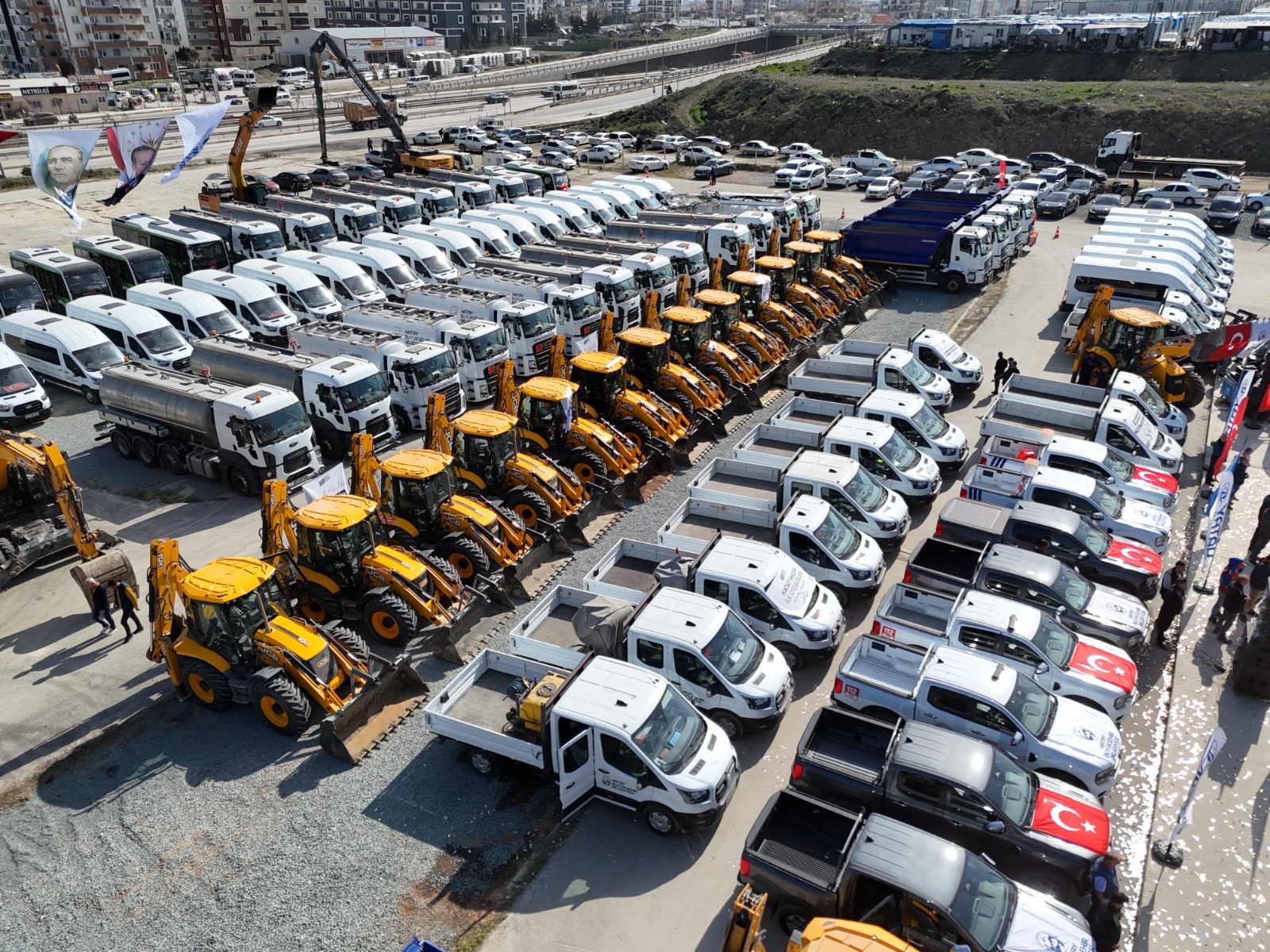 Başkan Öntürk; “Güçlü bir belediye için konuşlandırdığımız makine parklarıyla hızlı müdahalenin yanında pek çok yol ve altyapı işini de artık kendi gücümüzle yapıyoruz. Güçlü bir makine parkı hemşerilerimizin taleplerine süratle müdahale etmemize olanak sağladı. Bunu ancak kendi iş makinelerimizle yapabilirdik. Bu işler müteahhitle olmaz” ifadelerini kullanarak 1000 aracın Hataylıların öz malı olarak hizmet vereceğini açıkladı.