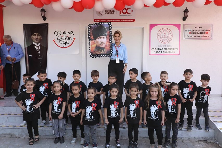 İskenderun Atatürk Okulu bahçesi içerisine Çocuklar ‘Gülsün diye’ Derneği tarafından Hatay’da yaptırılan 4. Anaokulu İsviçre’de yaşayan Türk topluluğunun destekleriyle tamamlandı. Okulun açılışına katılan Çocuklar Gülsün Diye Derneği Başkanı Gülben Ergen’i görmek için aileler de okul bahçesine akın etti.