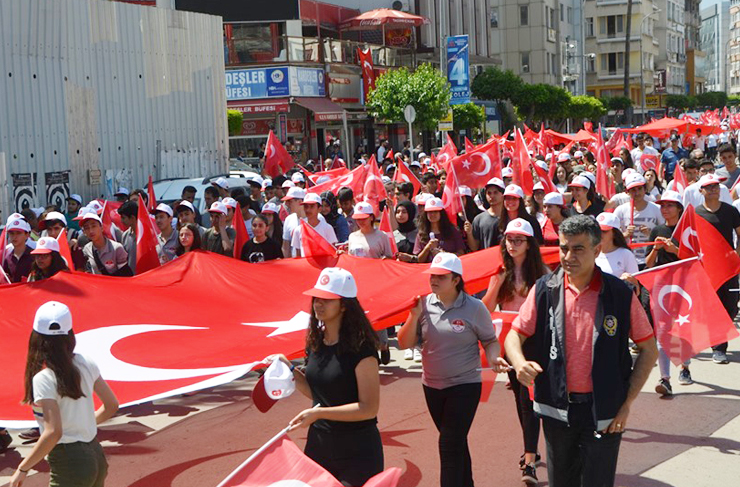 İskenderun Gençlik ve Spor ilçe Müdürlüğü tarafından organize edilen yürüyüşte 3 bine yakın genç ve öğrenci, ellerinde Türk bayrakları ile Atatürk Anıt Alanı’na kadar yürüdü. Mehter Takımı ile binlerce öğrencinin ellerinde Türk Bayrakları ile yürüyüşü sırasında vatandaşlarda balkonlarına çıkarak öğrencileri alkışladı.