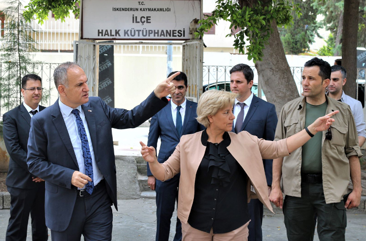 Kurum ve kuruluşlara yönelik düzenlenen ziyaret programı kapsamında, İskenderun İlçe Halk Kütüphanesi Müdürlüğüne ve akabinde Turizm Danışma Bürosuna ziyarette bulunan Kaymakam İskender Yönden; hizmet binasında yaptığı incelemenin ardından, İlçe Halk Kütüphanesi Müdürü Harika Leyla Yaman ve Turizm Danışma Bürosu Yetkilisi Ayla Mutluay ile kurum personelleriyle bir araya gelerek, kurumsal iş ve işlemler, personel düzeni, çalışma planları, vatandaşların talepleri ve bu taleplere istinaden yapılan işlemler, kanun, tüzük ve yönetmeliklerin uygulanmasına yönelik iş ve işlemlerine dair brifing aldı.