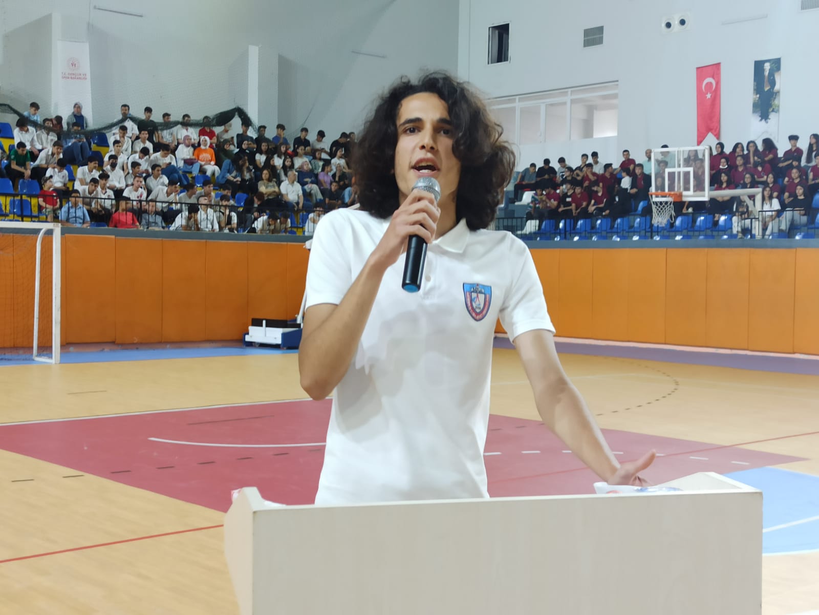 Sevgili gençler, binlerce şehit vererek, sıkıntı ve yokluklar içinde, büyük özverilerle kurulan Türkiye Cumhuriyeti sizlere emanettir. Bu değerli emaneti yaşatmak ve sonsuza kadar korumak, gelecek kuşaklara en iyi şekilde aktarmak, en başta gelen görev ve sorumluluğunuz olmalıdır. Unutmayınız ki sizler; Atatürk’ün eserlerinin temel taşısınız” şeklinde konuştu.
