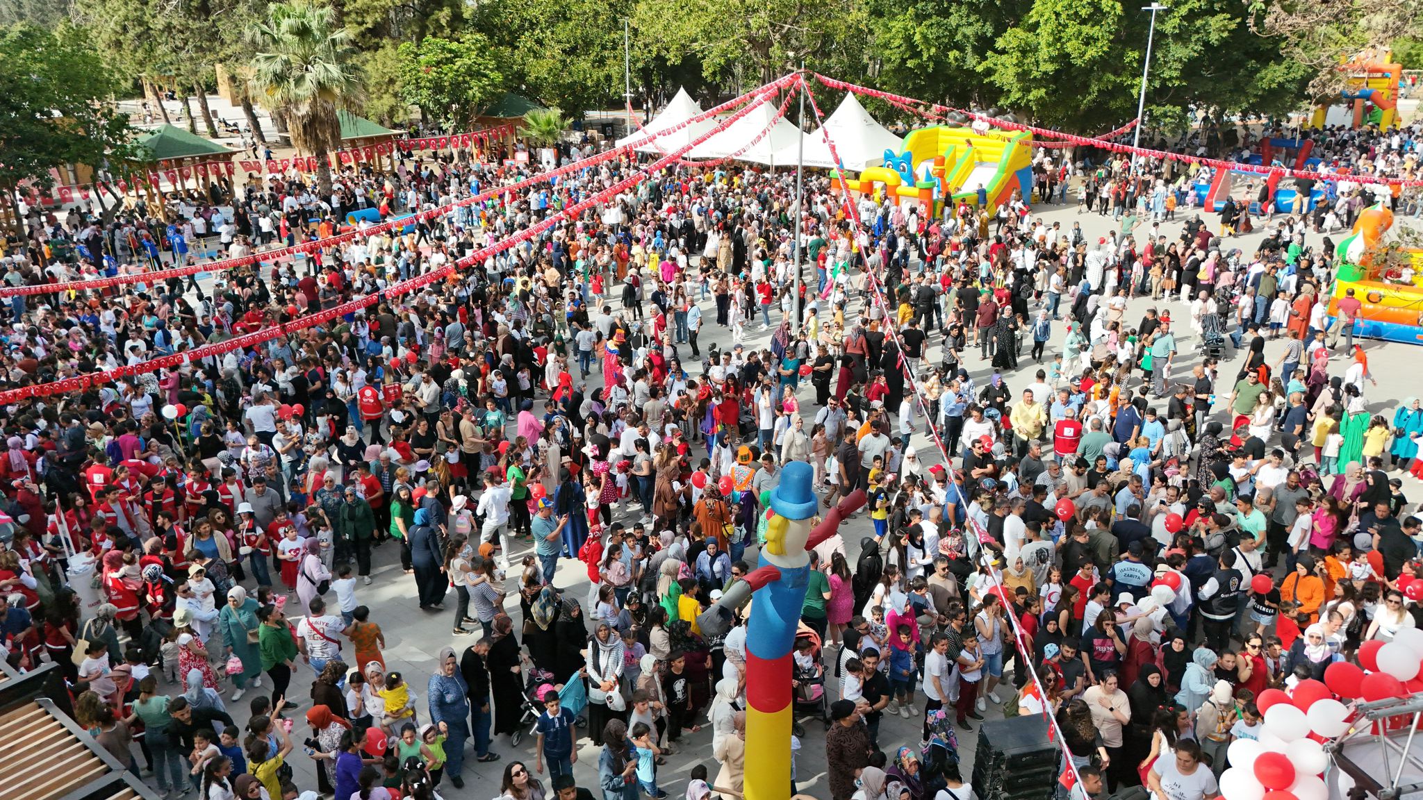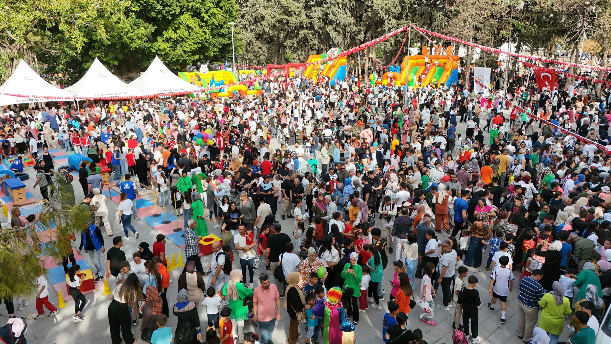 Akdeniz’in en büyük doğal parkı olan İskenderun Ziraat Park’ta gerçekleştirilen 23 Nisan şenliğinde on binin üzerinde çocuk ve ailesi 23 Nisan kutlamasında doyasıya eğlendi.
