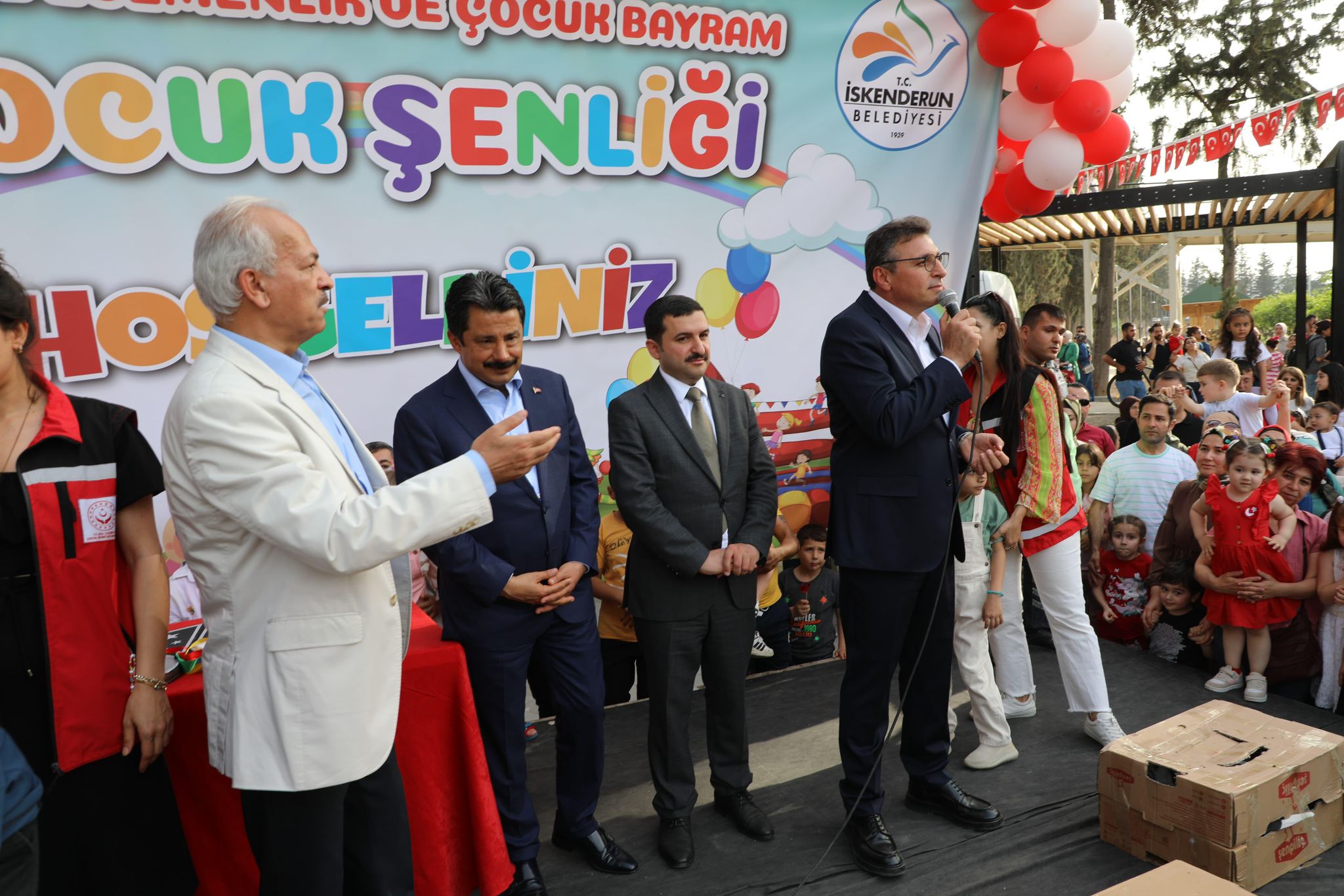 23 Nisan Ulusal Egemenlik ve Çocuk Bayramı ülkemize bölgemize kutlu olsun. 23 Nisan Ulusal Egemenlik ve Çocuk Bayramı çocukları ilgilendiren kısmıyla bir güne haiz değil. Türkiye’de örnek olabilecek çocuklara özel etkinlikler, bugünden sonra her fırsatta dile getireceğiz bunların zamanı tarihi şu anda arkadaşlarımız çalışıyorlar bu zaman aralıklarıyla beraber yaz şenliklerine başlayacağız, yaz kamplarına başlayacağız, su sporu etkinliklerinden, ilk defa İskenderun’da çocuklarla beraber göreceğiz. Bunların tamamı bir planlama dahilinde kısa sürede İskenderun’a sürprizlerimiz olacak bizleri takip etmeye ve merak etmeye devam etsinler” şeklinde konuştu.