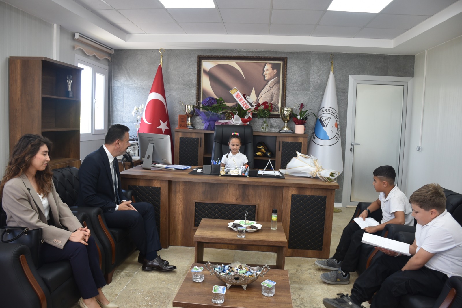 23 Nisan Ulusal Egemenlik ve Çocuk Bayramı etkinlikleri kapsamında her yıl geleneksel olarak yapılan protokol koltuk devrinde Arsuz Belediye Başkanlığı koltuğuna Akçalı Naci Uyar İlkokulu öğrencisi Nil Deniz Çetin oturdu.