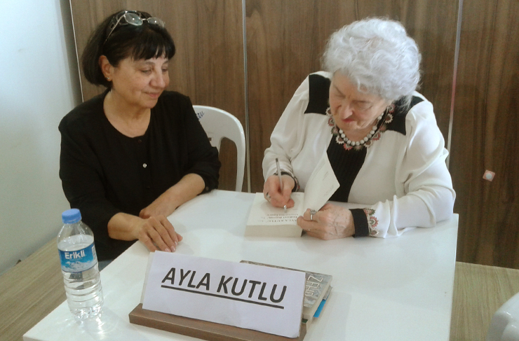 Neyse bendeniz hem kitapçıları tek tek geziyor hem de “Zehra” nın başında duruyordum. Aynı zamanda Ayla Kutlu’nun gelmesini bekliyordum. Evet sevgili okuyucularım fuarın son günü sevgili, değerli büyüğümüz Ayla Kutlu saat 14 gibi gelip kitap imzalamaya başlayınca bendenizde hemen sıraya girdim. Elimde “Zehra” doğrusu resim çektirmek isteyenlerden dolayı sıra bendenize zor geldi. Her zamanki gibi parlıyordu Ayla Hanım beyaz saçları, gülümseyen yüzü ile. Beni görünce ”Yase” dedi. Evet Yase diye destekledim. Selamlaştık, onu sevgiyle, saygıyla öptüm. Zehra’yı görünce hemen ilgilendi kapağa bakar bakmaz “hayatını mı yazdın” dedi. Resmini sanki önceden görmüş gibi. Gülümsedim çok hoşuma gitti “hayır bendenizin hayatı değil ama içimizden herhangi birinin hayatı” dedim. Yanına oturdum biraz söyleştik. Kitap imzalamak için daha birçok yere gidecekti ancak daha sonra İskenderun’a dönecekmiş, dönüşte görüşmek umudu ile ayrıldım kitabını imzaladı. Onu göğsüme bastırıp ilkokul öğrencisi gibi sevinçle sekerek kitap otağının standına döndüm.