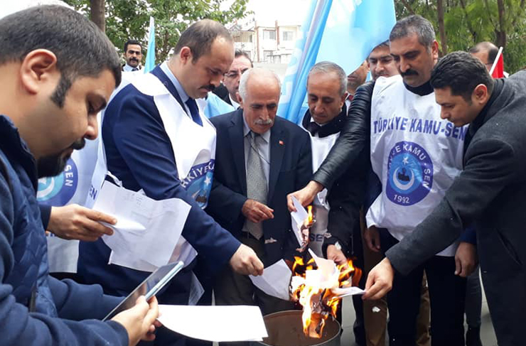 Türkiye Kamu Sen İskenderun Temsilciliği üyeleri, eski bit pazarı önünde bir araya gelerek, yapılan zammı, bordrolarını yakarak protesto ettiler. Basın açıklamasına, Türk Yerel Hizmet Sen Şube Başkanı Bahtiyar Şahin, Türk Sağlık Sen Hatay Şube Yöneticisi Mehmet Kayhan, Cengiz Demirkıran, Türk Ulaşım Sen Hatay Temsilcisi Mustafa Korkmaz, Türk Tarım Orman Sen İskenderun Temsilcisi Sinan Yan, Türk Haber Sen İskenderun Temsilcisi Mehmet Ali Açıl, Türk Büro Sen Hatay Şube yöneticisi Mehmet Aygen, Türk Emekli Sen İskenderun Temsilcisi Öner Çetinkaya, Türk Eğitim Sen Dörtyol Temsilcisi Fatih Saygılı da katılarak destek verdiler.