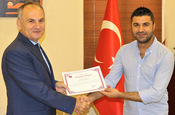 İskenderun Kaymakamı İskender Yönden tarafından, İskenderun’un anavatana ilhak oluşunun 81. yıldönümü münasebetiyle tertip edilen 5 Temmuz Kültür Sanat ve Turizm Festivali etkinliklerinin uygulanması sürecinde emeği geçen ve görevini başarıyla ifa eden kurum yöneticilerine teşekkür belgesi verildi.