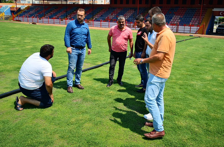 Yeni sezon öncesinde, 5 Temmuz İskenderunspor’un taraftarlarıyla buluşmasına günler kala, yönetim işi sıkı tutuyor. İskenderun Belediyesi Destek Hizmetleri Müdürü Ergün Saydam, Kulüp As Başkanı Bünyamin Saraçoğlu, Başkan Yardımcısı Suat Alpaydın, Teknik Direktör Hıdır Özdemir ile yardımcısı Halit Yavuz, hep birlikte 5 Temmuz Stadındaki çalışmaları yerinde incelediler. (Haber Merkezi)