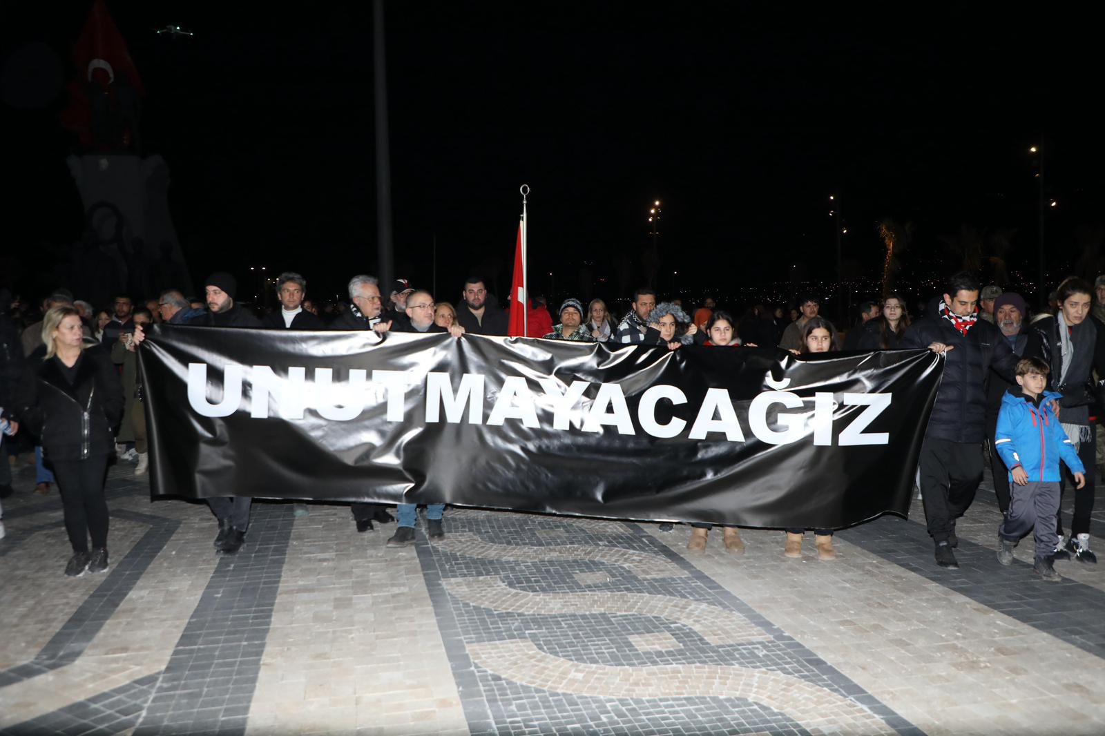 Ellerinde kaybettikleri yakınlarının fotoğraflarını taşıyan vatandaşlar, pankartlarla depremi unutmadıklarını ve unutturmayacaklarını bir kez daha gösterdi. Duygu dolu anların yaşandığı anma töreninde, depremde yaşamını yitirenler bir kez daha rahmetle anıldı. (Haber: Helga TERBİYELİ)