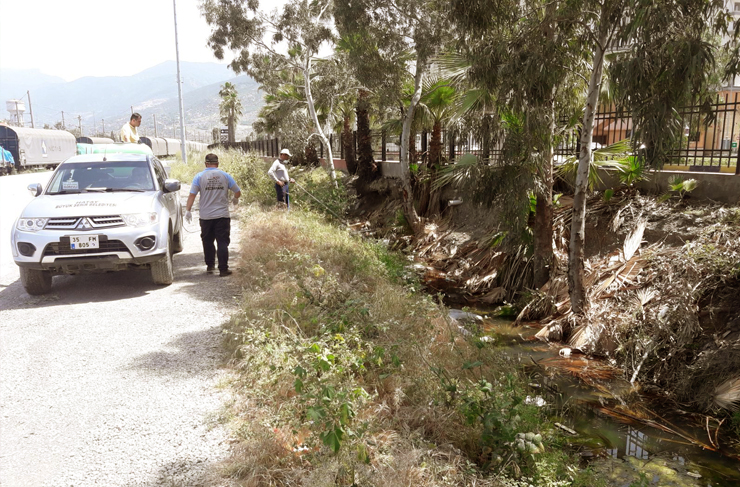 Krinomit sineğini üreten derelerde ve Asi Nehri’nin taban çamurunda yoğun bir şekilde mevcut krinomit sineği larvası ile mücadele çalışmaları ergin mücadele çalışmalarıyla paralel olarak devam ediyor. Krinomitin yanı sıra Hatay ili genelini kapsayan haşere mücadele çalışmalarında 70 bin üreme noktasının periyodik aralıklarla 20 günde bir ilaçlanması şeklindeki mücadelesi HBB ekipleri tarafından tüm yoğunluğuyla sürdürülmektedir.