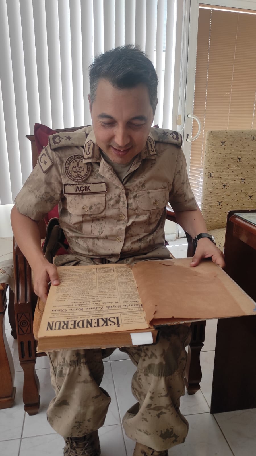Üç gün boyunca devam eden ziyaretler kapsamında üçüncü günümüzde, İskenderun İlçe Jandarma Komutanı Binbaşı Mustafa Açık, bu yılda bizleri onurlandırdı. 79. Yayın Yılımızı kutlayan Binbaşı Açık, İskenderun Gazetesinin ilk sayısı ile ilk ciltleri hakkında gazete imtiyaz sahibimiz Rızkullah Terbiyeli’den bilgiler aldı.