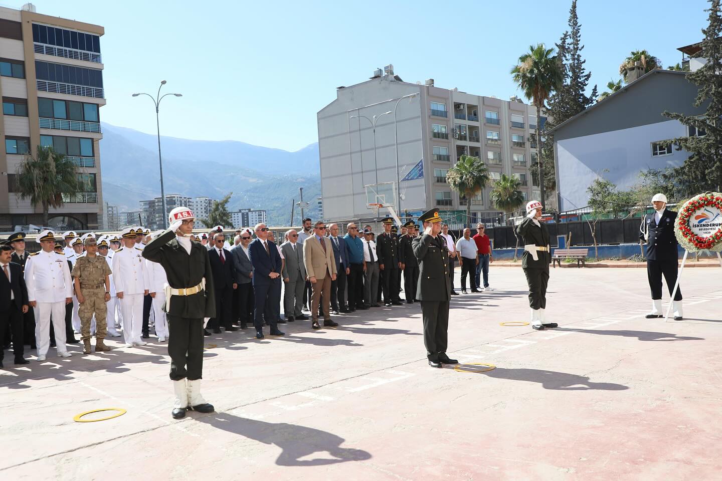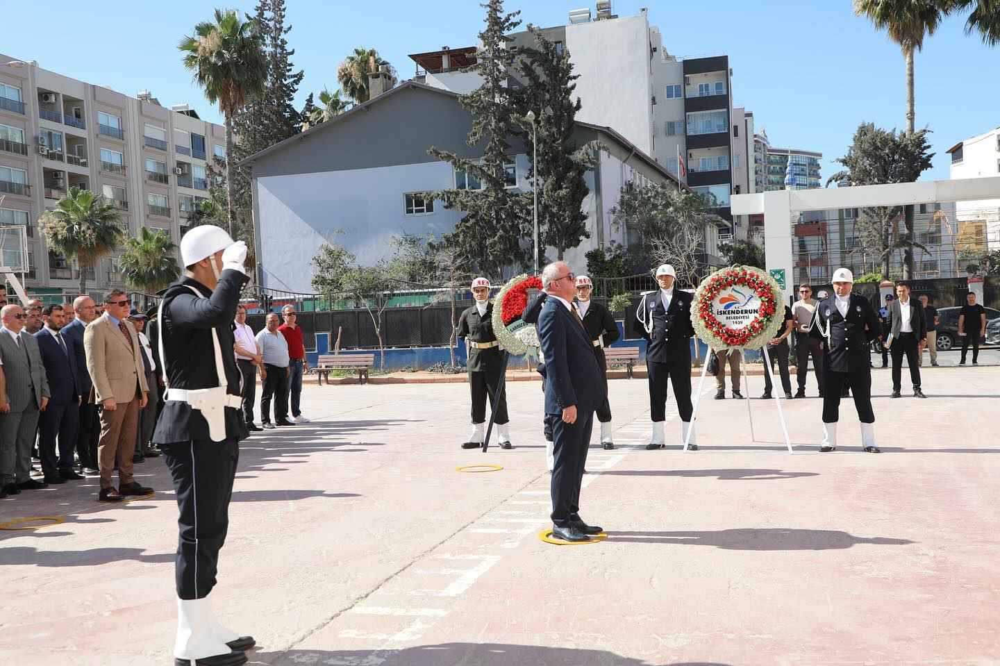 Hanife Uysal Ortaokulunda düzenlenen törende, İskenderun Kaymakamı Muhammet Önder, 39. Mekanize Piyade Tugayı ve Garnizon Komutanı Tuğgeneral Bülent Tarhan, Belediye Başkanı Mehmet Dönmez tarafından Ata’nın manevi huzuruna çelenkler sunuldu. Ardından saygı duruşunda bulunuldu ve İstiklal Marşı hep birlikte okundu.