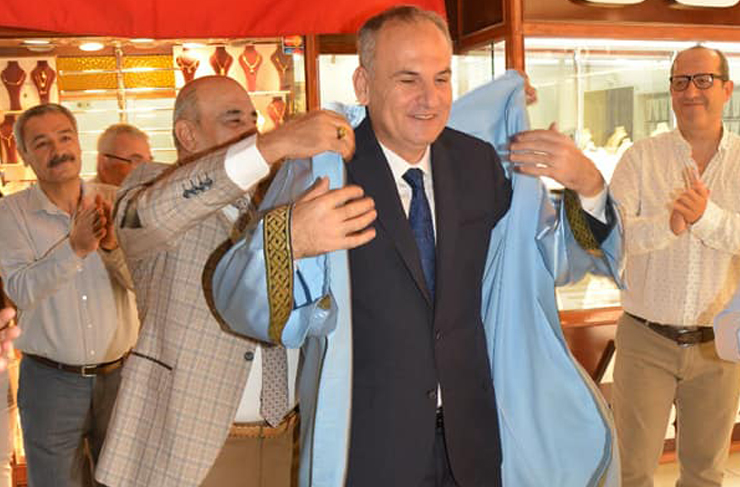 İskenderun Kuyumcular Odası Yönetim Kurulu ve Başkan Uğur Fırat dün de, İskenderun Kaymakamı İskender Yönden’e sembolik olarak Ahi Kaftanı giydirdi. Sembolik Ahi Kaftanını giyen İskenderun Kaymakamı İskender Yönden, gerçekleştirilen jest dolayısıyla Kuyumcular Odası Başkanı Uğur Fırat ve yönetim kuruluna teşekkür etti ve her daim esnaflarla beraber olduğunu ifade ederek kendisinin de bir esnaf çocuğu olduğunun altını çizdi.
