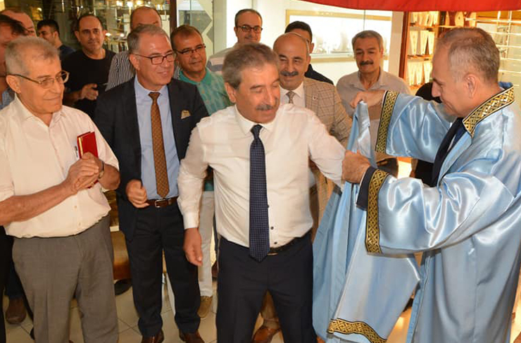 Kaftan giyme töreninde konuşan Kuyumcular Odası Başkanı Uğur Fırat; “Sayın kaymakamımız İskender Yönden in katılımıyla kaftanlarımızı ve plaketlerimizi takdim ettik. Odamızın onursal başkanı Mişel Aygül, Denetim Kurulu Başkanımız Corç Kırılmaz yılın Ahisi, Saat Ustası Çetiner Karamağara yılın olgun esnafı olarak layık görülmüştür.