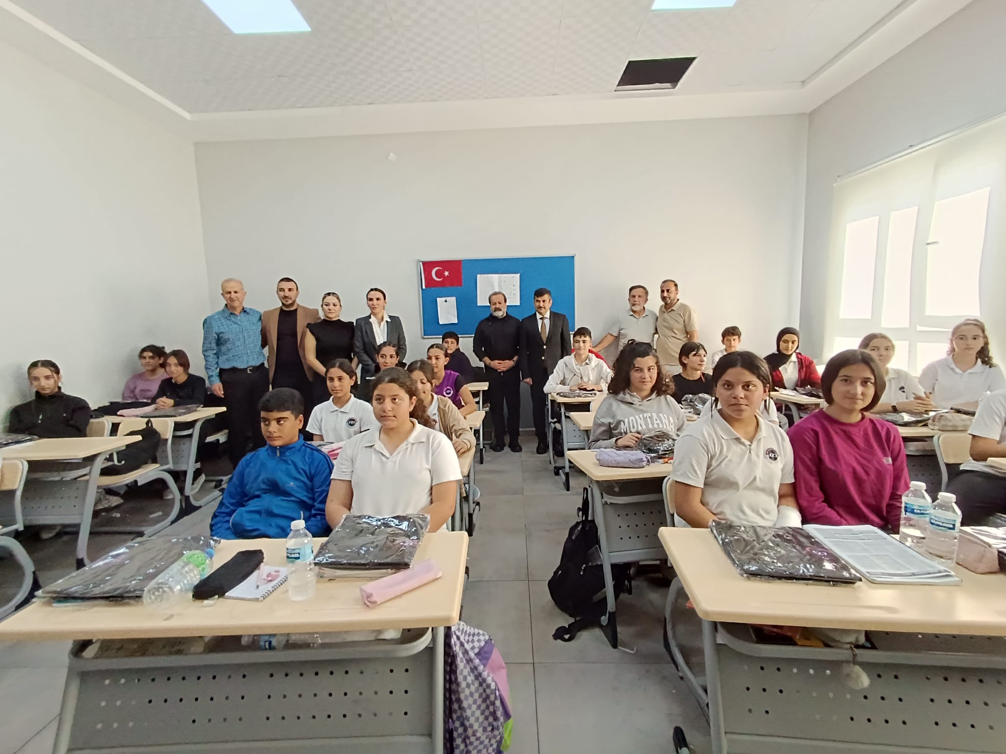 2024-2025 eğitim öğretim yılında kapılarını öğrencilere açan okulda, bu kez anlamlı bir destek daha sağlandı. Dr. Şahutoğlu, okulda eğitim gören 517 öğrenciye, iki yazlık ve bir kışlık formadan oluşan forma seti hediye etti.
