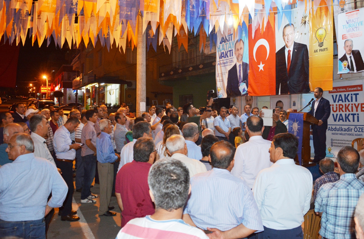 Var güçleriyle sahada çalışma yaptıklarına dikkat çeken Hatay Milletvekili adayı Abdulkadir Özel; “Yeni dönem; üretime dayalı, büyümeye dayalı, hizmetlerin ve yatırımların planlandığı ve bu planlama doğrultusunda İskenderun’un da daha iyi bir pay alacağı dönem olacaktır. Biz bunun için çalışıyoruz. Ankara’da taleplerimize kulaklarını kapatan, gözlerini kapatan bürokrasiye izin vermeyeceğiz. Başta bölgemizdeki kardeşlerimizin istihdam sorununu çözeceğiz. İstihdamı yapacağımız yatırımlarla daha da arttıracağız. İstihdama yönelik ne kadar hizmet varsa, ilimize ve bölgemize yönlendirmek için istişare yapacağız” şeklinde konuştu. (Haber: Helga TERBİYELİ)
