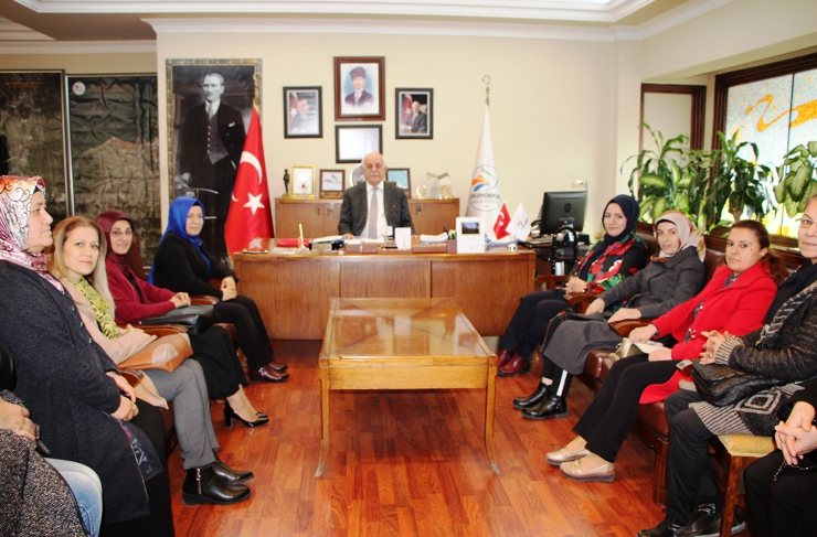 Ak Parti Hatay İl Kadın Kolları Başkanı Sara Gök, İskenderun İlçe Başkanı Pakize Ulutaş, İskenderun İlçe Kadın kolları başkanı Gül Nalcı ve kadın kolları üyeleri İskenderun Belediye Başkanı Seyfi Dingil’i makamında ziyaret ettiler.