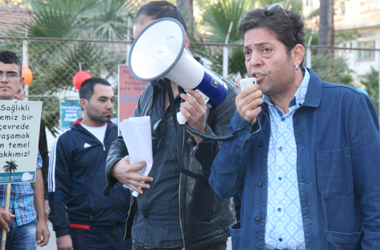 Hatay Valisinin 6 ay öncesinden bu alana Cami yapılması konusunda anlaşma yaptıklarını açıklayan Akbay; “Belediye başkanı ile Hatay Valisi halka çelişkili açıklamalar yaparak bu alanın betonlaştırma niyetlerini ifşa ettiler. Biz Sosyal Haklar Derneği olarak seçilmiş veya atanmış yöneticilerin sırça köşklerde oturarak halkın yaşam kalitesini ortadan kaldıran, İskenderun halkını betonlaşma ile nefessiz bırakacak icraatlarına sessiz kalmayacağız. İskenderun halkının kendi malına sahip çıkmaya, çocuklarımızı ve geleceğimizi nefessiz bırakacak betonlaşmaya dur demeye çağırıyoruz. Hep birlikte talana, yalana ve betonlaşmaya dur diyelim” dedi.