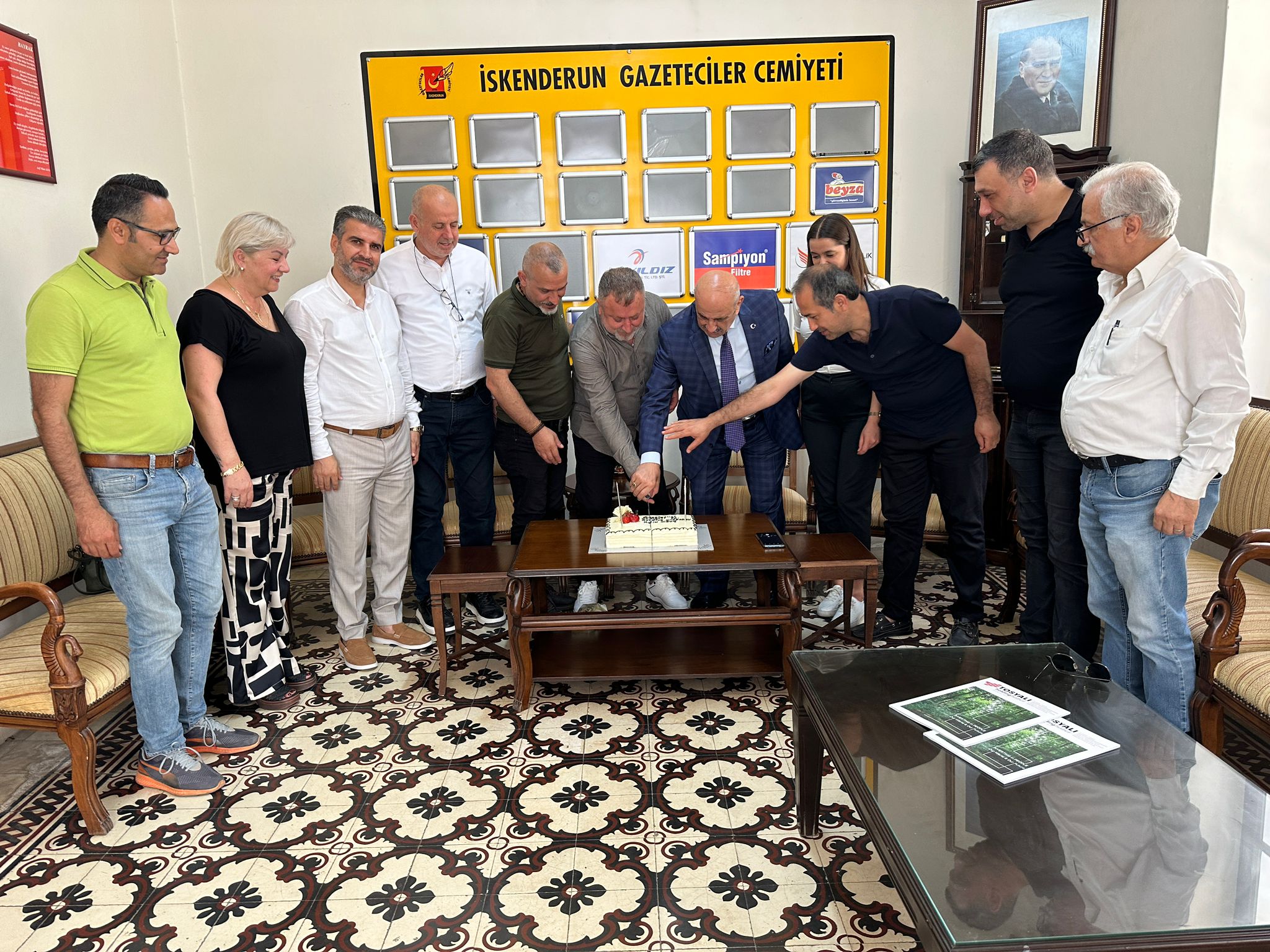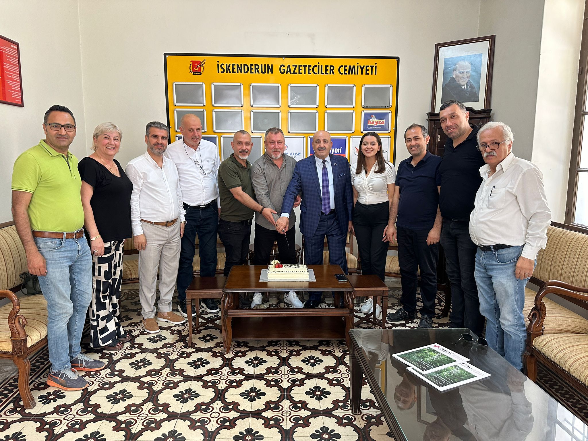 İskenderun Kuyumcular ve Saatçiler Odası Başkanı Uğur Fırat ve yönetim kurulu, İskenderun Gazeteciler Cemiyeti’ni ziyaret ederek cemiyetin kuruluşunun 61. yıl dönümünü kutladı. Yapılan ziyarette hep birlikte pasta da kesildi.